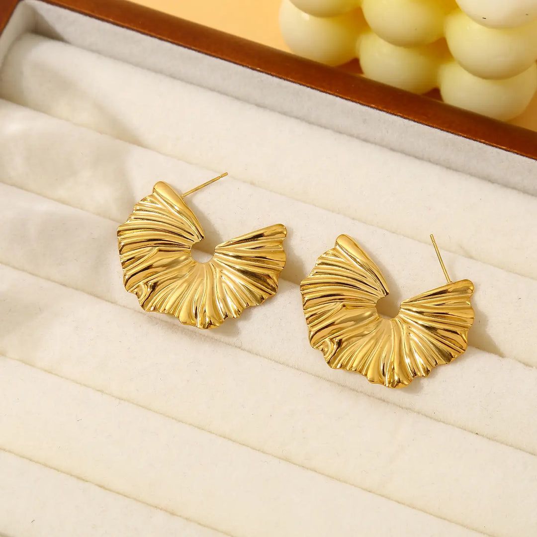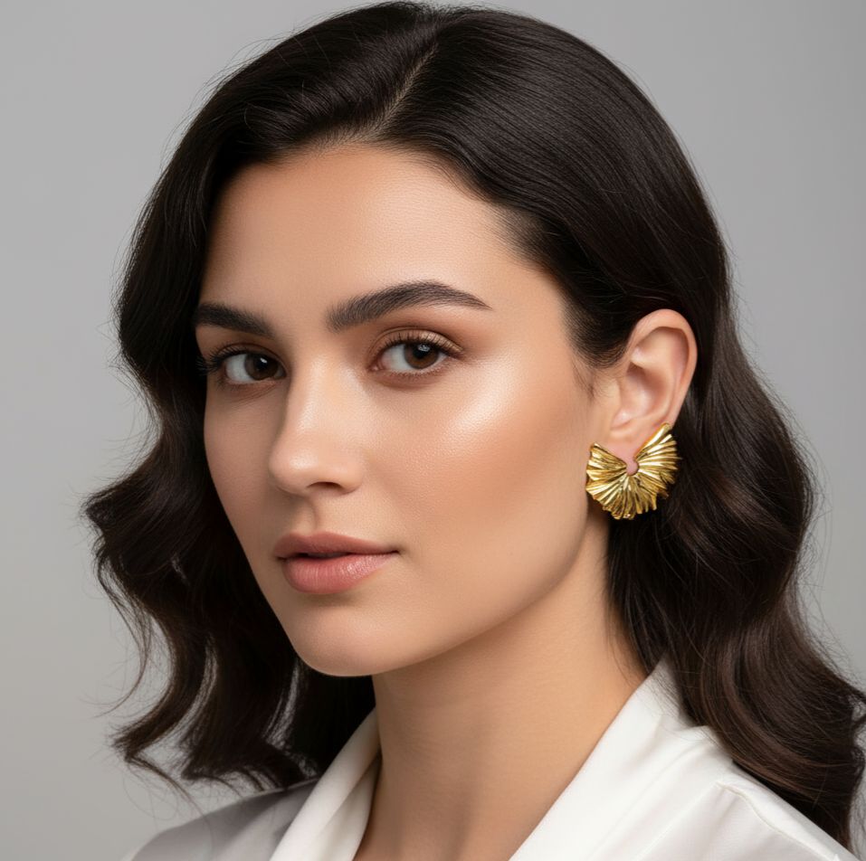 Featuring a beautifully textured ripple pattern inspired by flowing fabric and organic waves, these earrings combine luxury and bold design in one striking silhouette. Lightweight yet impactful, they are perfect for women who love modern, high-fashion jewelry with a touch of glamour.