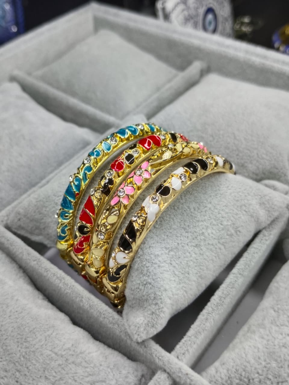 Be the first to review “Multi-Color Crystal Enamel Gold-Plated Bangle Set”
